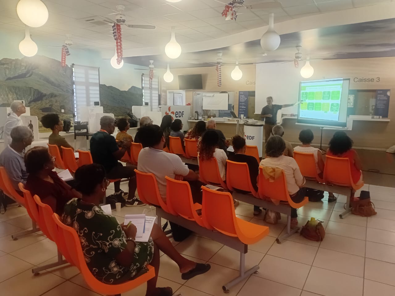 A Saint-Pierre, une formation qui permettra de mieux accompagner les accueillis. Grâce à une convention avec EDF Réunion, le Secours Catholique bénéficie d’un accès privilégié aux dispositifs d’aides financières liés à la consommation électrique. C’est dans ce cadre qu’une trentaine de bénévoles ont assisté à une formation proposée par l’EDF où ils ont appris à analyser une facture d’électricité, à identifier les leviers pour réduire sa consommation et ses coûts, et à connaître l’ensemble des aides disponibles aux personnes dans le besoin. Ils seront désormais mieux à même d’éclairer et accompagner sur ce sujet les personnes qui s’adressent à nos différents points d’accueil à cause de difficultés à régler leur facture.