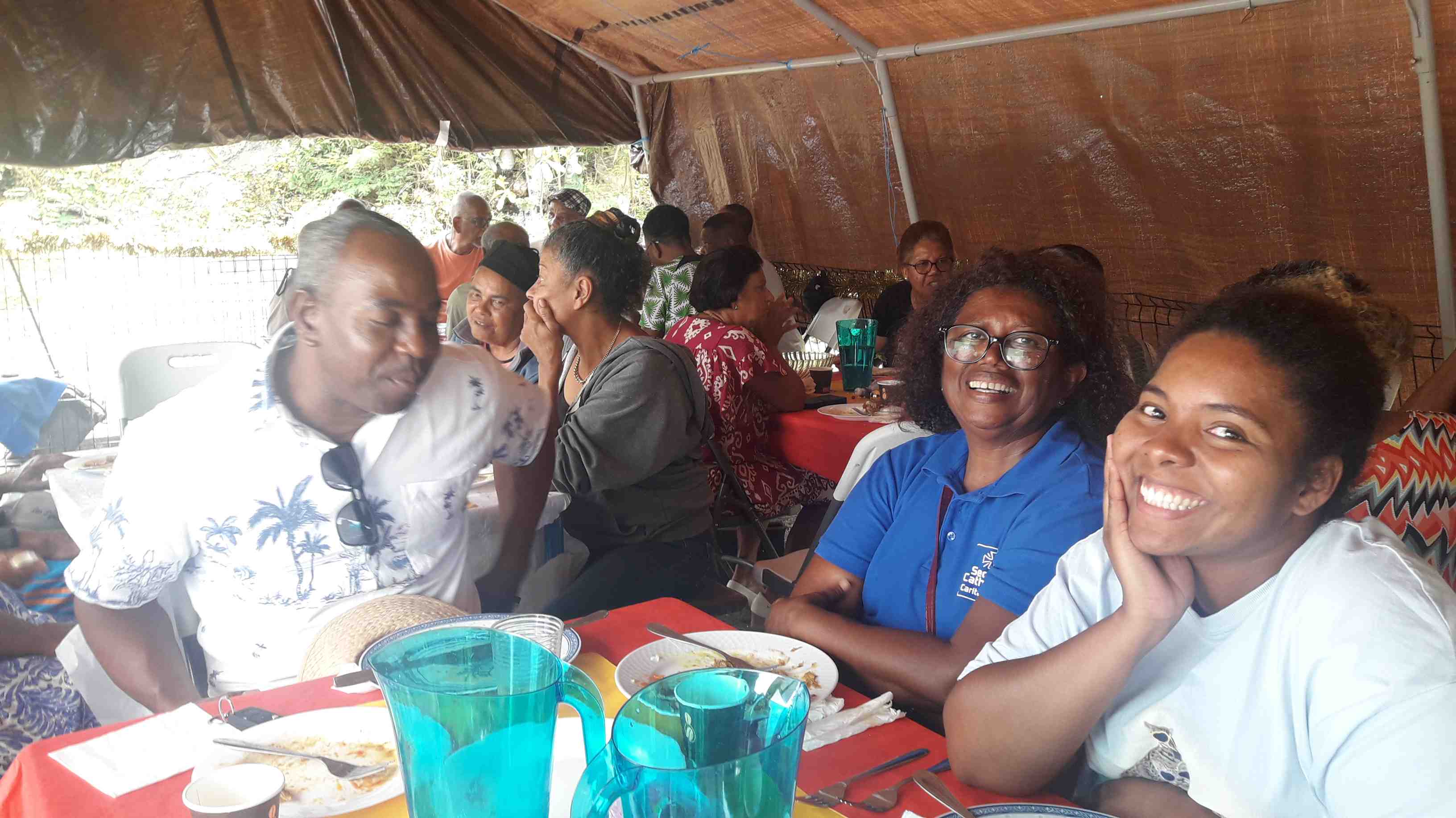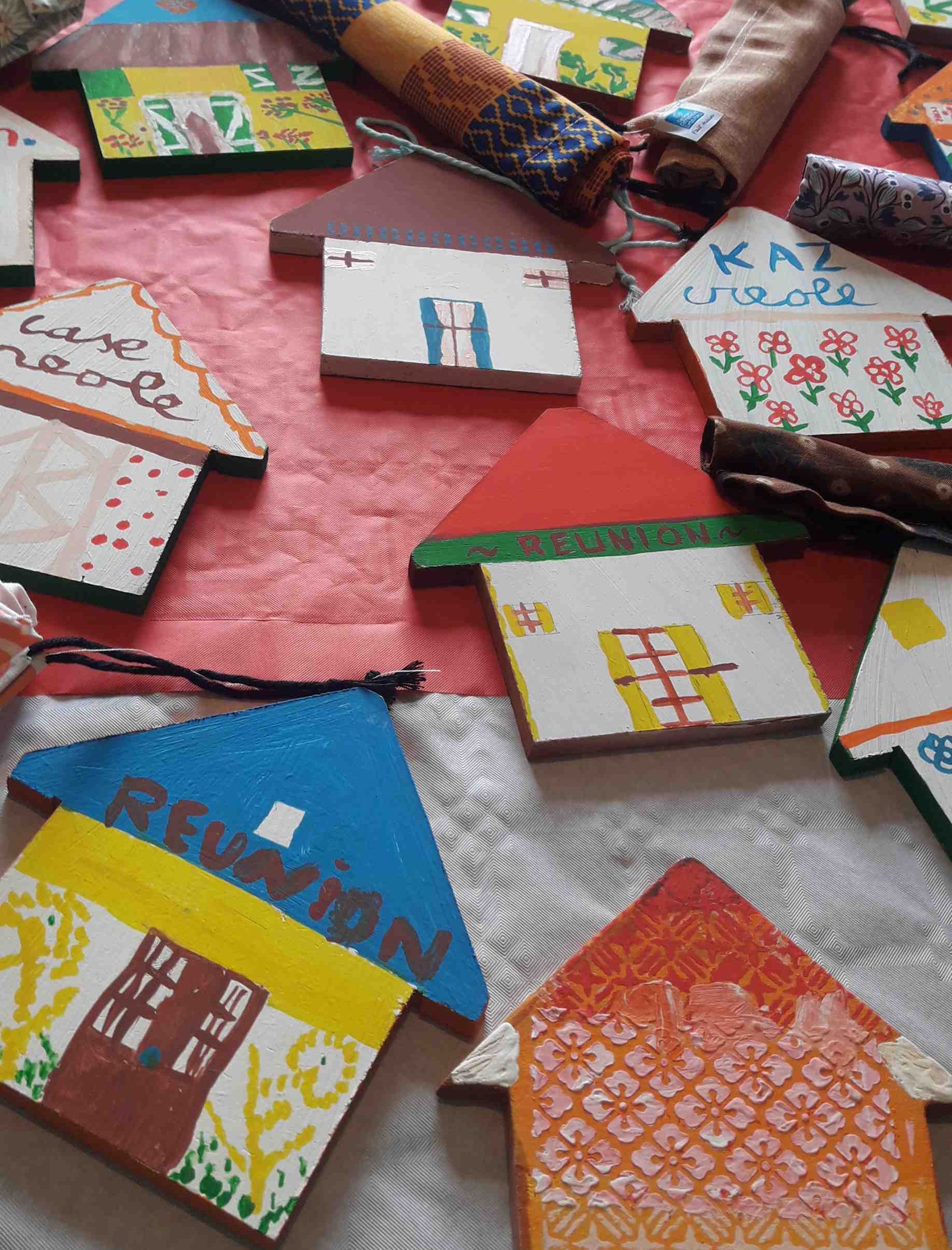 Les intempéries du matin ont mis à mal les préparatifs dans un premier temps, mais finalement chacun a pu s’asseoir autour d’un repas festif préparé par les bénévoles, dans un jardin décoré de créations artisanales aux couleurs de Noël. Tous ont profité ensemble d’un beau moment de partage et de détente. Avant de se mettre à table, ils ont pu admirer les objets fabriqués pendant l’atelier créatif et solidaire : des porte-clés « kaz créole » accompagnés de leur jolie poche cadeau. Pour les réaliser, le petit groupe de couturières a été renforcé par les enfants de l’accompagnement scolaire qui ont aidé à peindre les maisons. Cette création « intergénérationnelle » sera offerte le 24 décembre aux marins en escale au Port.
