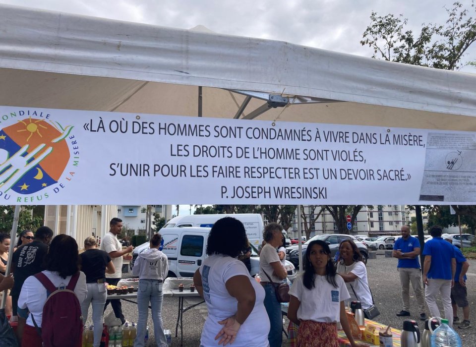 Le 17 octobre, c’est la Journée Mondiale du Refus de la Misère. A La Réunion, cette journée reconnue par les Nations Unies est célébrée tous les ans par ATD Quart Monde sur le parvis des Droits de l'Homme et de la Laïcité, à Champ-Fleuri. Le Secours Catholique, en tant que partenaire, était une nouvelle fois présent à l’événement, et a accueilli les participants pour le petit déjeuner.