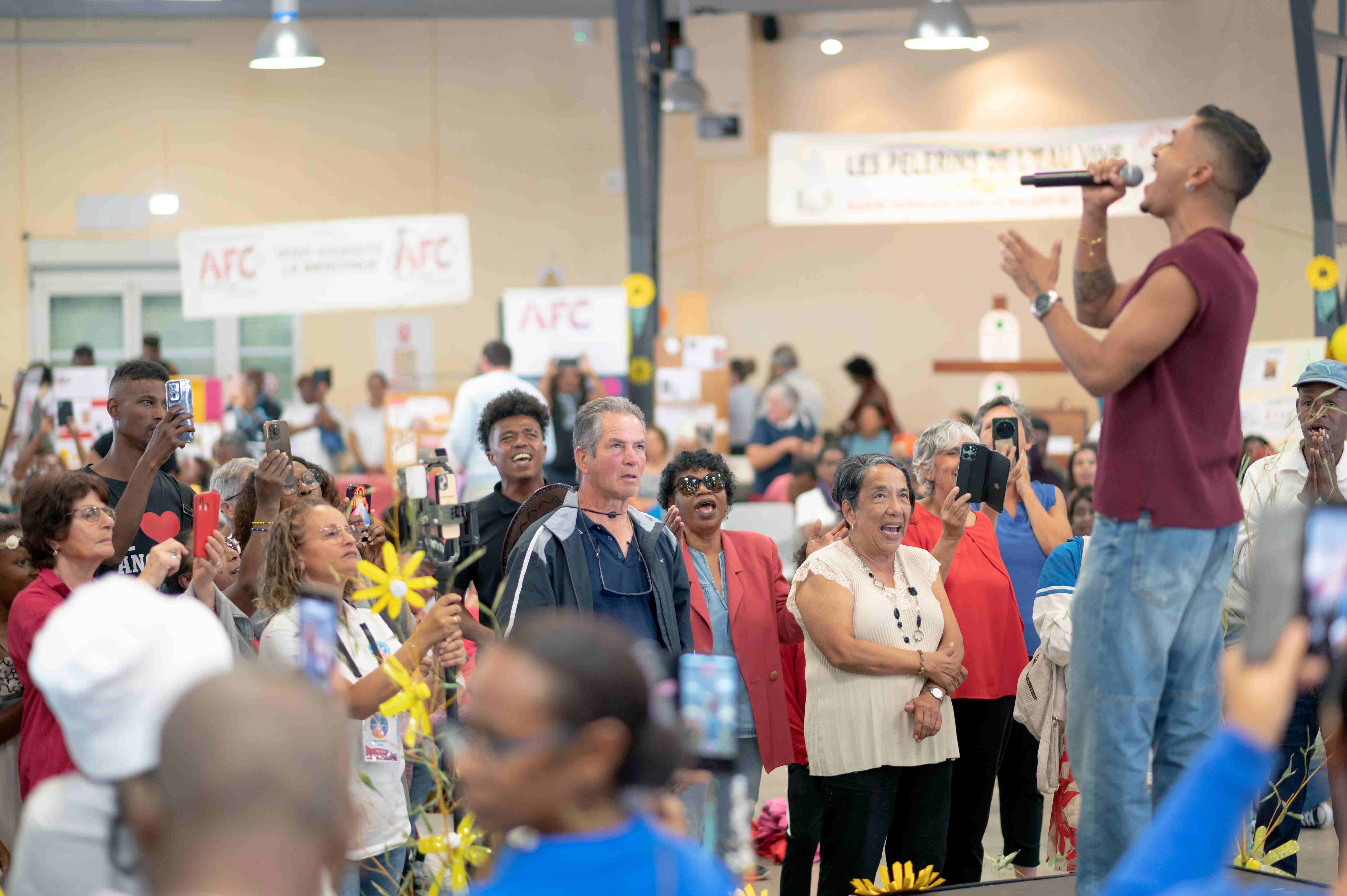 La journée s’est achevée par une messe tout en musique, animée par la chorale improvisée et les musiciens et présidée par notre évêque : un temps fort bien festif où l’assemblée a manifesté sans hésiter sa joie d’être présente. Mgr Chang-Teng a souligné qu'on vivait une journée où fraternité rimait avec dignité, dans un climat de confiance.