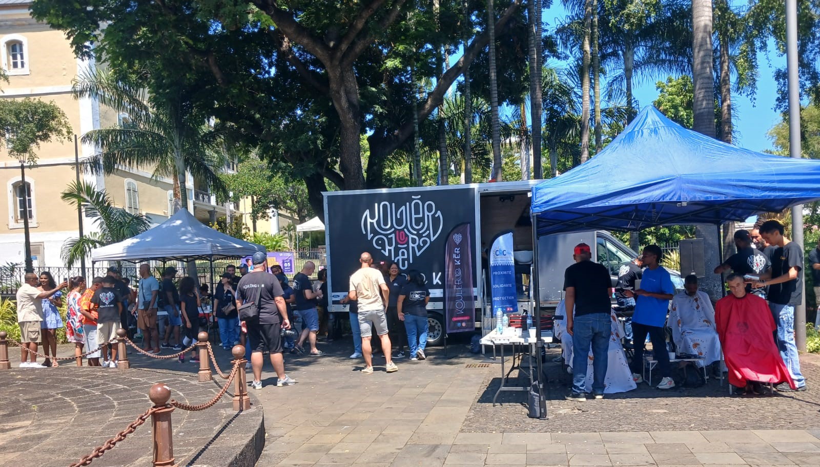 L’association partenaire a déployé pour la seconde fois son « Vilaz’ Solidèr » : salon de coiffure, soins bien-être (massage, vernis), vêtements neufs... le tout accompagné de maloya et d’autres musiques et culture peï, et pour terminer, un repas. Le «Hair’Truck » (salon de coiffure itinérant) et le «Sape’Truck » (cabine d'essayage itinérant) de Kouler Lokèr- déployés ensemble sur site pour la première fois - venaient compléter le dispositif traditionnel d’accueil des personnes démunies assuré tous les samedi matin par nos bénévoles.