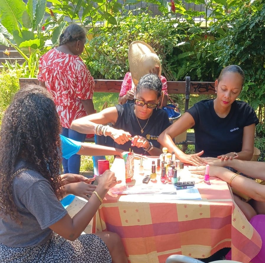 Les soins proposés par les professionnels du domaine ont apporté du bien être esthétique (et sans doute aussi un soulagement de certains douleurs) ; des musiciens et artistes engagés ont partagé leur énergie et leur talent, créant une belle ambiance où vibrait la force de la solidarité. Des restaurants et commerçants généreux ont fait don de vêtements neufs, chaussures, accessoires, massage, tresses, gourmandises, pâtisseries, boissons. D’autres, en fin de matinée, ont offert le repas.