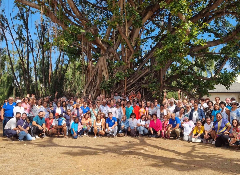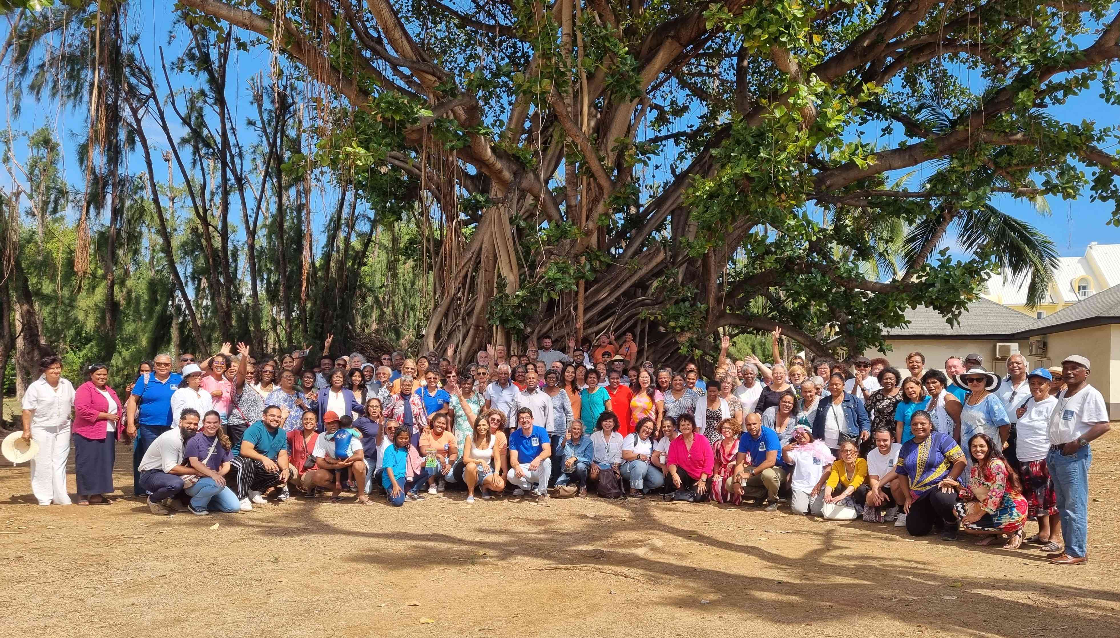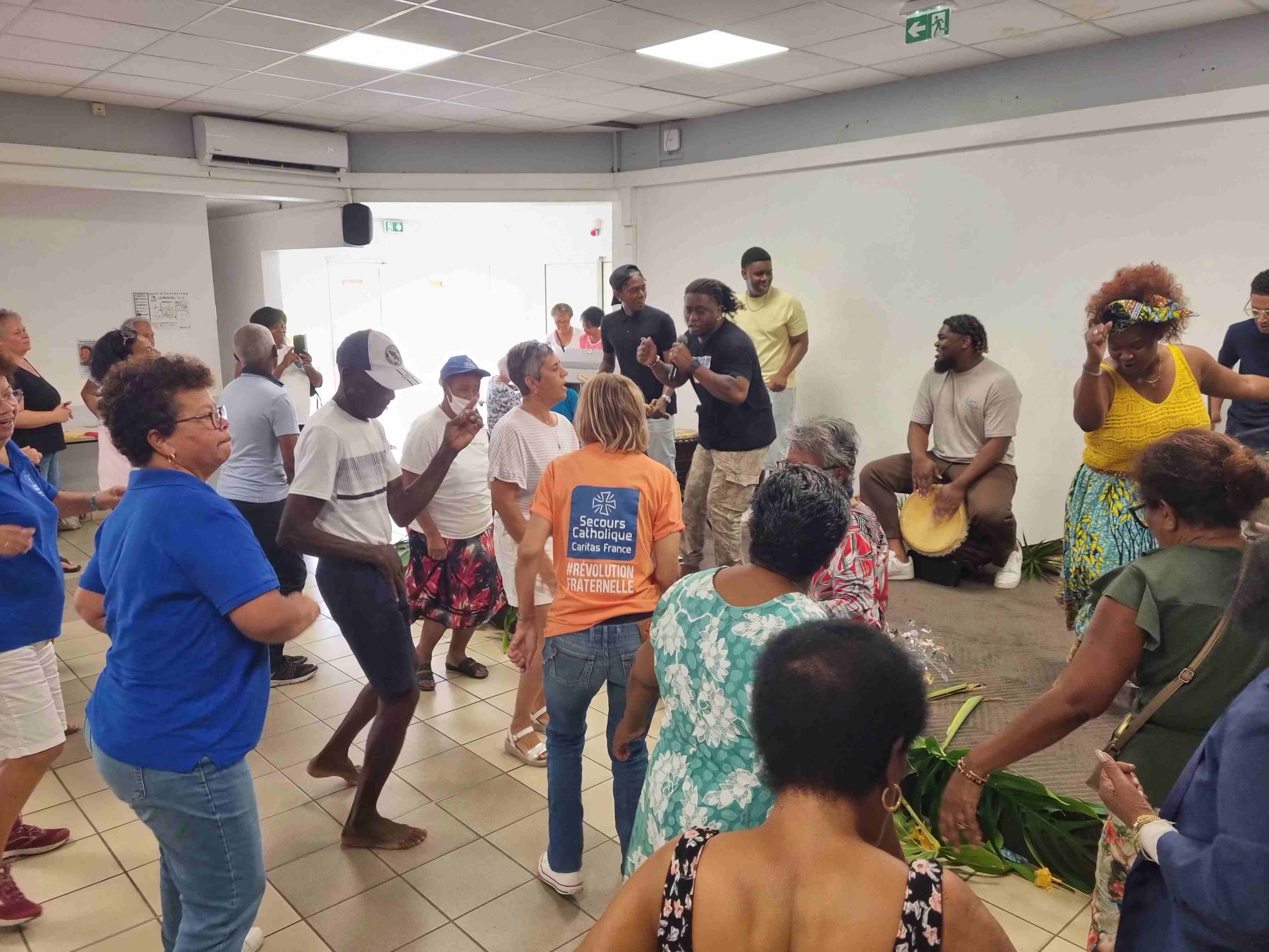 Cette année, la Journée a eu lieu au Village Corail à Saint-Gilles. Dans ce cadre agréable et spacieux, rafraîchi par la petite brise du lagon, de nombreuses activités ludiques ou créatives sont proposées tout au long de la matinée. L’accueil se fait d’abord dehors, autour d’un café ou un thé, et ensuite dans la grande salle où l’équipe organisatrice lance le dynamisme et présente les activités de la journée : il y en a pour tous les goûts. Les bénévoles se répartissent au gré de leurs envies, et les équipes des différents secteurs se mélangent. A l’intérieur: dominos pour les uns, coloriage de mantras ou créations de décorations florales pour les autres… « C’est pour offrir à ma petite Vierge », annonce Judith (Ravine des Cabris), toute heureuse de sa création. Dehors, sous les filaos, d’autres découvrent la sophrologie, font du théâtre ou de l’improvisation, ou jouent à la pétanque.