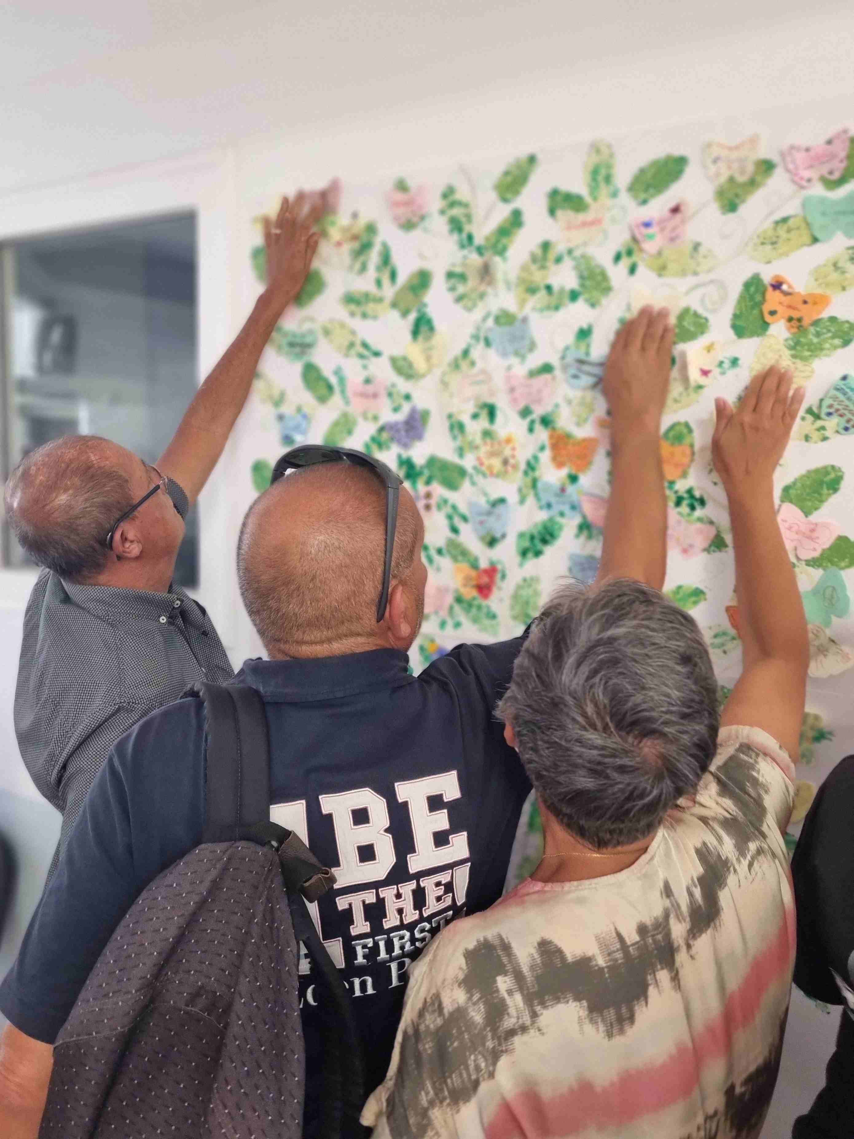 A l’heure du repas, les équipes sont de nouveau mélangées, selon la couleur du papillon remis à chacun en arrivant. Ainsi, les rencontres se poursuivent, et les papillons dûment coloriés et décorés seront affixés à une grande affiche, voletant autour de l’arbre « Secours Catholique » : un beau symbole de notre délégation!